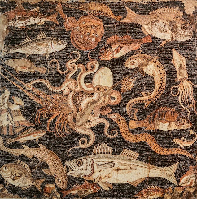 Museo Archeologico: mosaico con pesci dalla Casa del fauno di Pompei